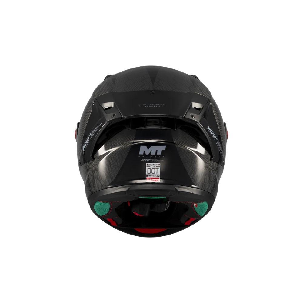 El KRE+ S es un casco de competición real, construido en **fibra de carbono 100 por cien**, con estructuras multicapa que ofrecen un rendimiento excepcional frente a impactos y velocidad. La decoración **Pure A1 Brillo** aporta un look limpio y sofisticado, resaltando la identidad racing de MT Helmets con su nuevo logotipo deportivo.