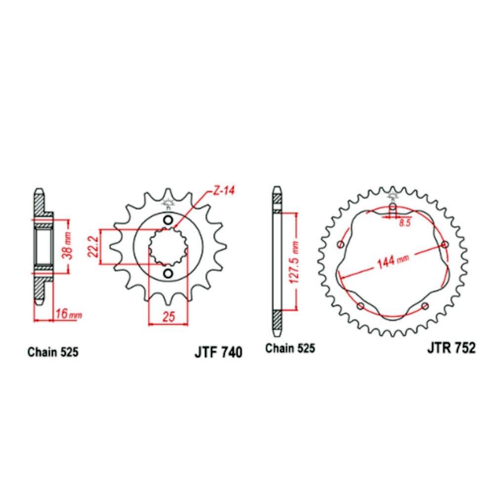 Este kit no incluye cadena. Se recomienda instalar una **cadena 525 / 110 pasos** para completar la transmisión.