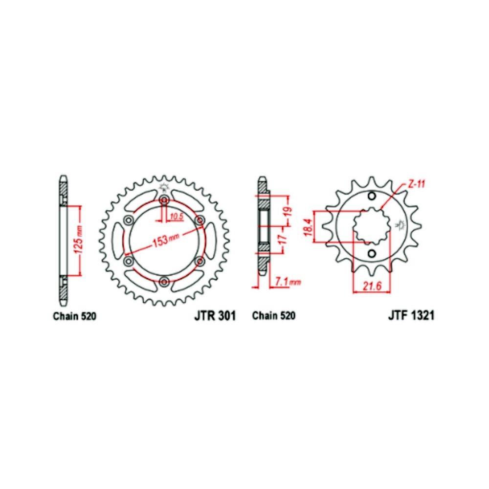 - Piñón delantero ref. 1321 con 14 dientes.