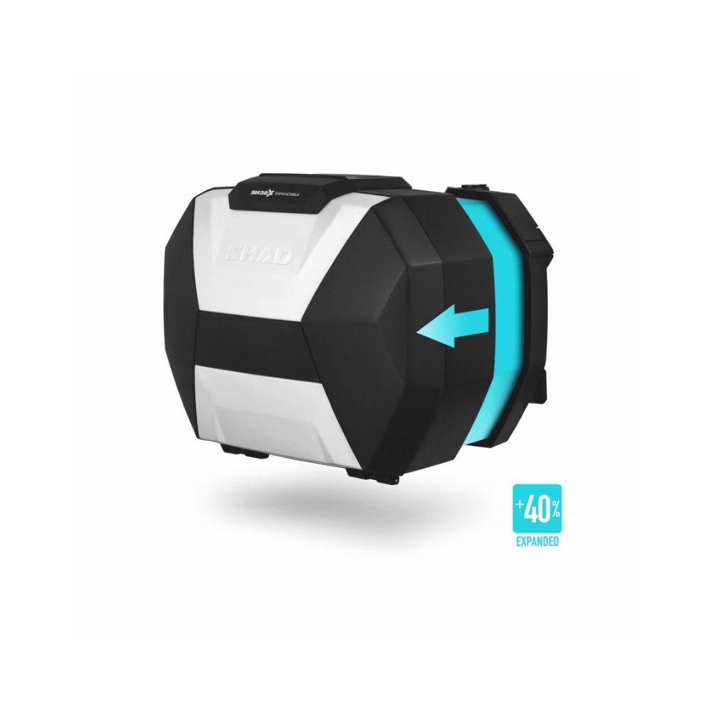 - ¿Se pueden usar con un top case expandible SH58X o SH59X? Sí, forman parte de la misma familia de equipaje expandible de Shad y están pensadas para combinarse con las top expandibles SH58X o SH59X.